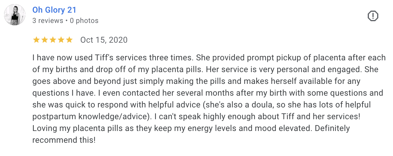 Unlike most placenta specialists who are also doulas, this is all I do, which means when you work with me, you never have to wait on your pills because I’ve been called to a birth.