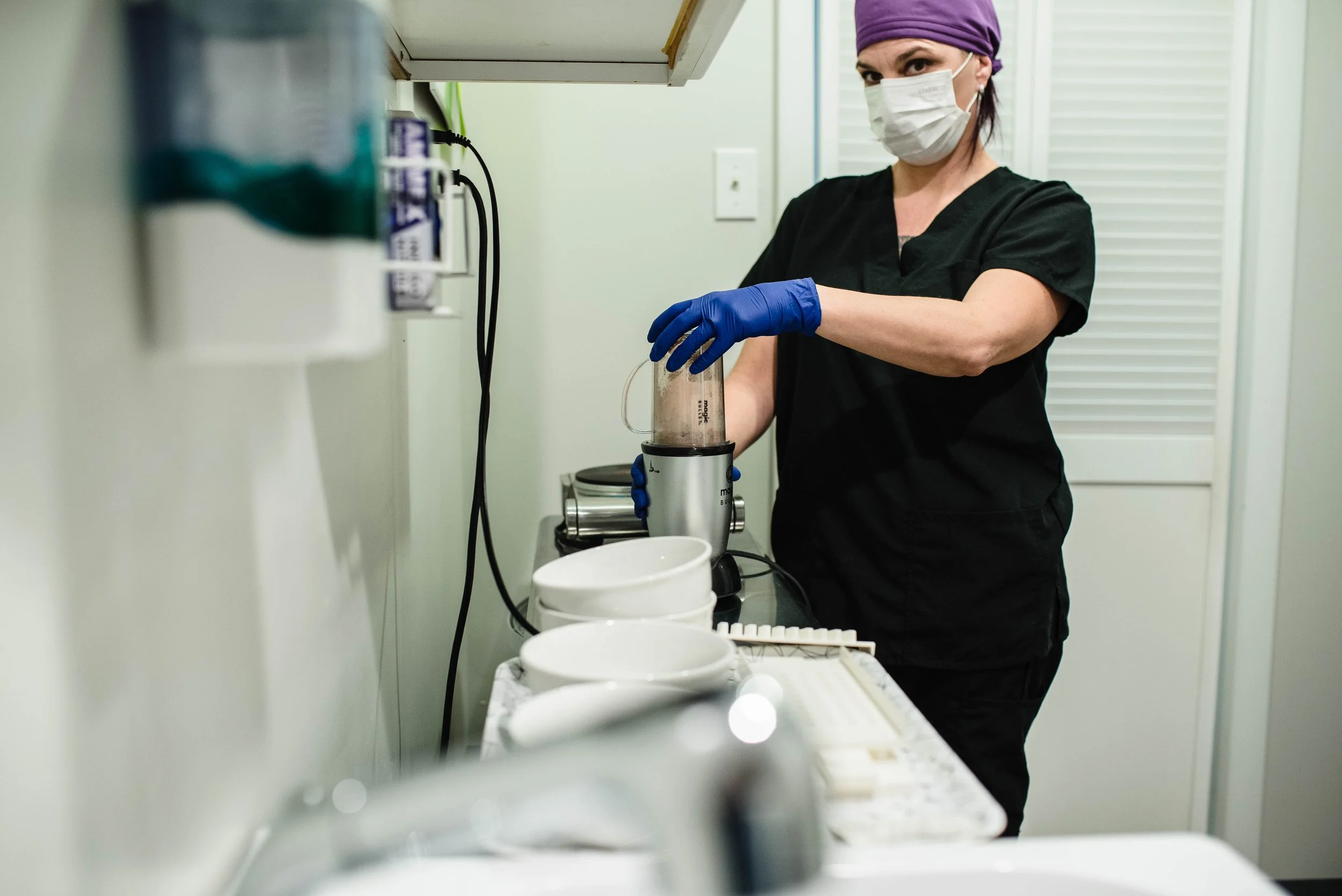 I work in a clean, sanitized workspace dedicated to placenta encapsulation — no kids or pets allowed